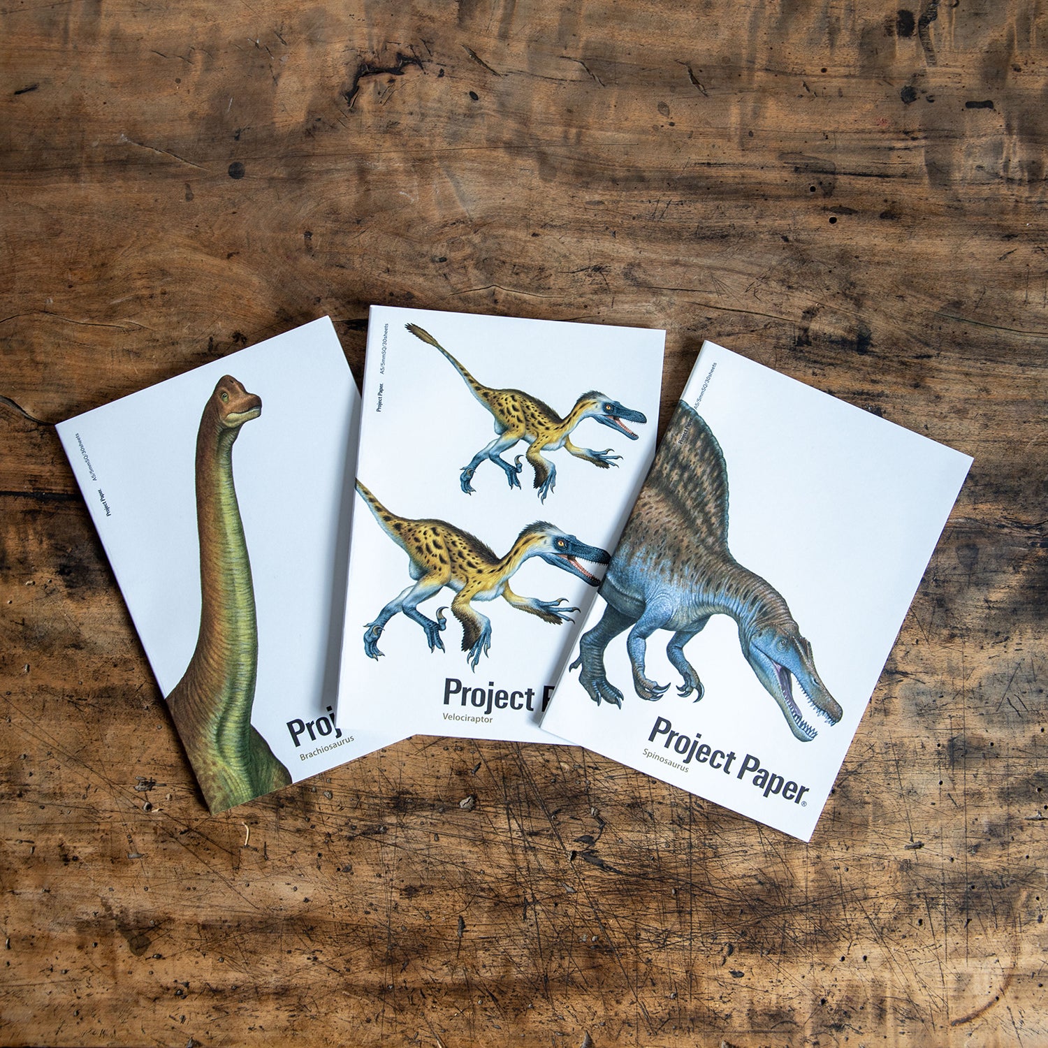 恐竜イラストの第一人者、藤井康文さんのイラストを採用した恐竜好きさんのためのこだわりノート。