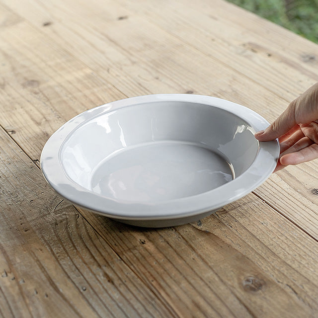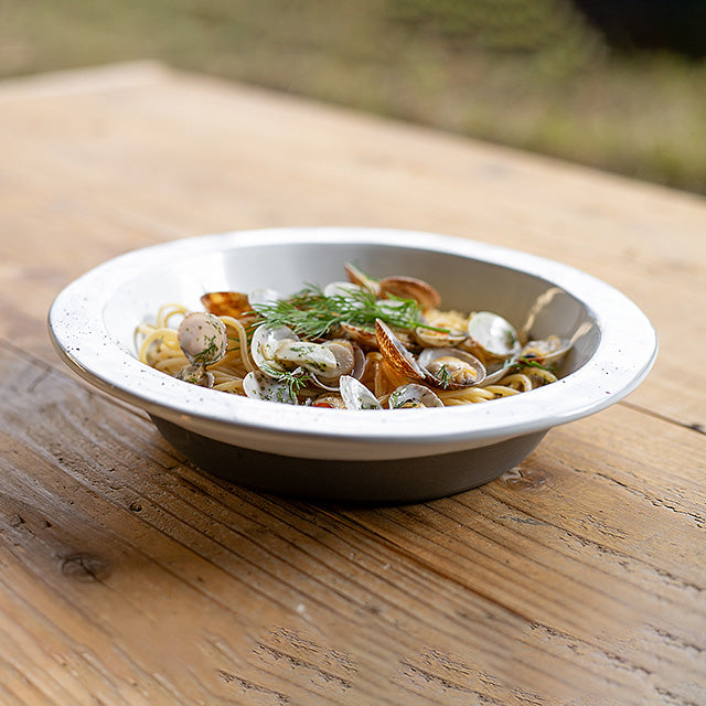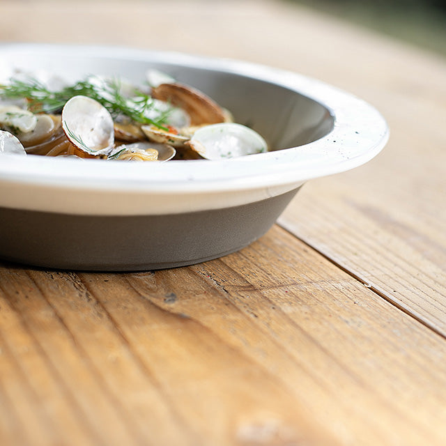 リムが程よいアクセント。ブロカントの食器のような静かな佇まいのパスタボウル
