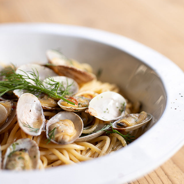 バ シンプルでスタイリッシュなパスタボウル。少し大きめなので、パスタをすっきり盛りつけたり、2,3人でシェアするパスタやサラダを盛るのにもおすすめです。オーブンも使えるのでグラタンもいいですね。