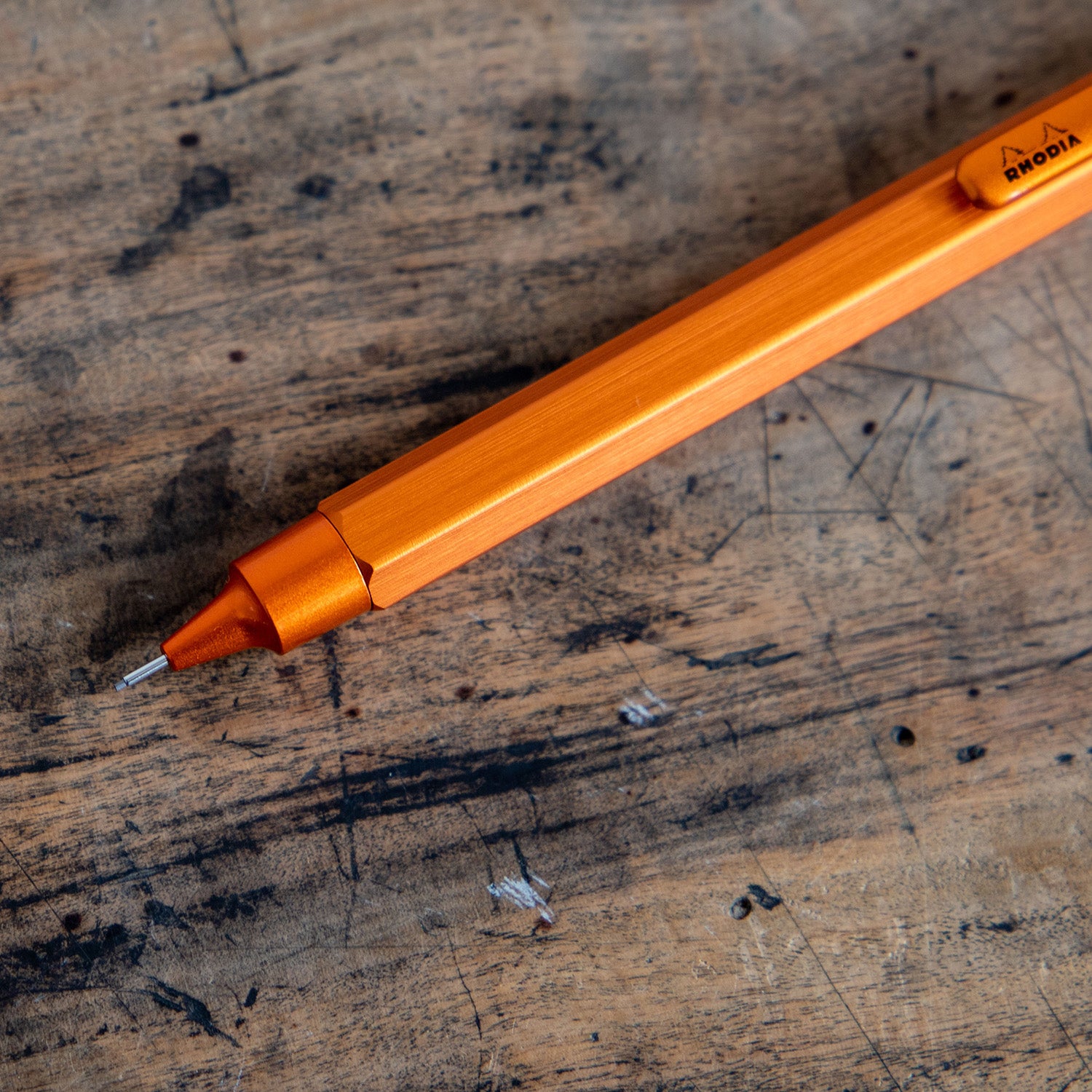 世界80カ国以上でブロックメモを展開する「ロディア」のシャープペンシルです。書く時間、描く時間をよりアクティブに、よりクリエイティブにするために設計された、集中力をそぐことがないミニマルなデザイン。アルミニウム素材を採用した六角形軸はヘアライン加工で仕上げられ、金属のグレード感を楽しめるだけでなく、手触りにも優れます。ペン先が見やすい形状で自由なドローイングが可能です。