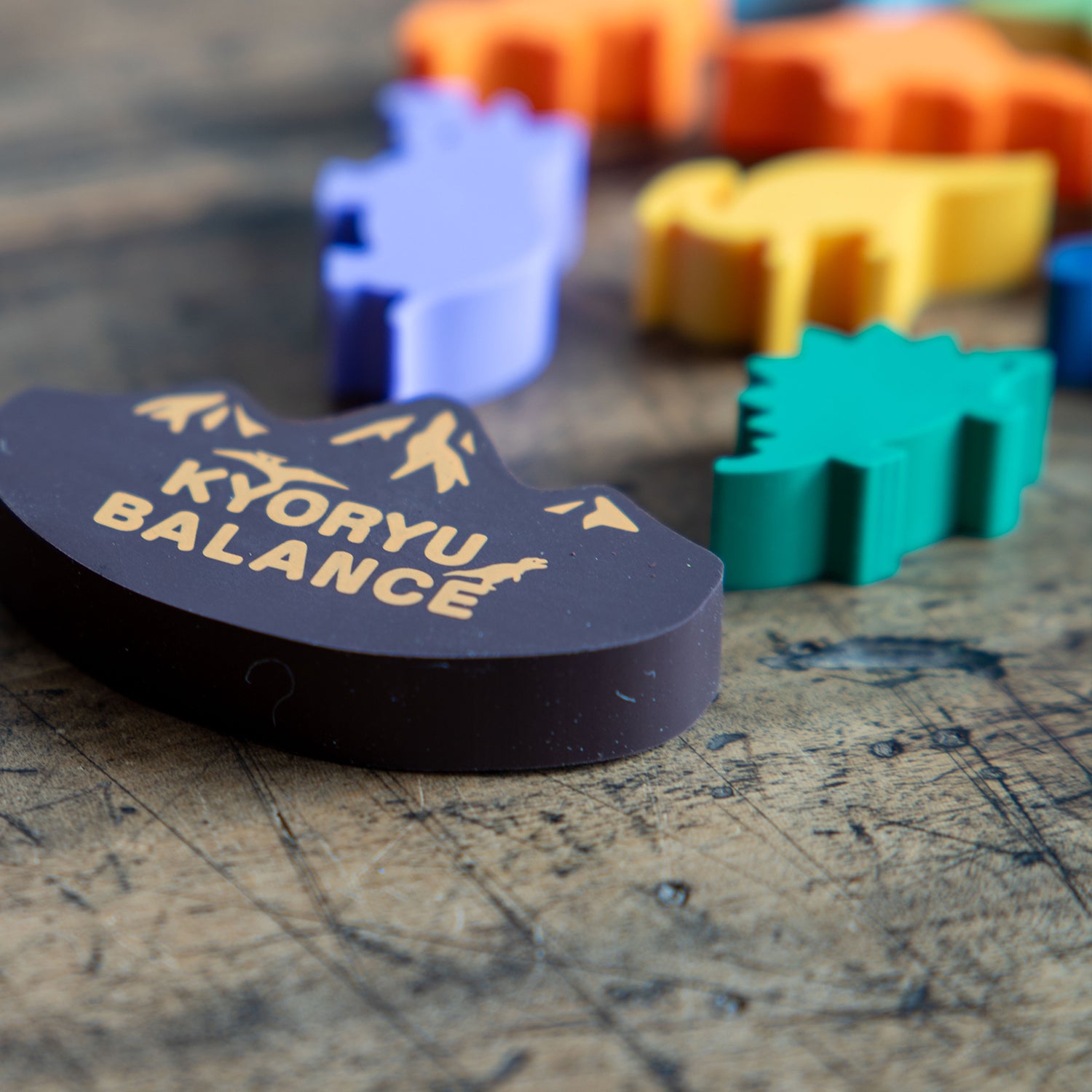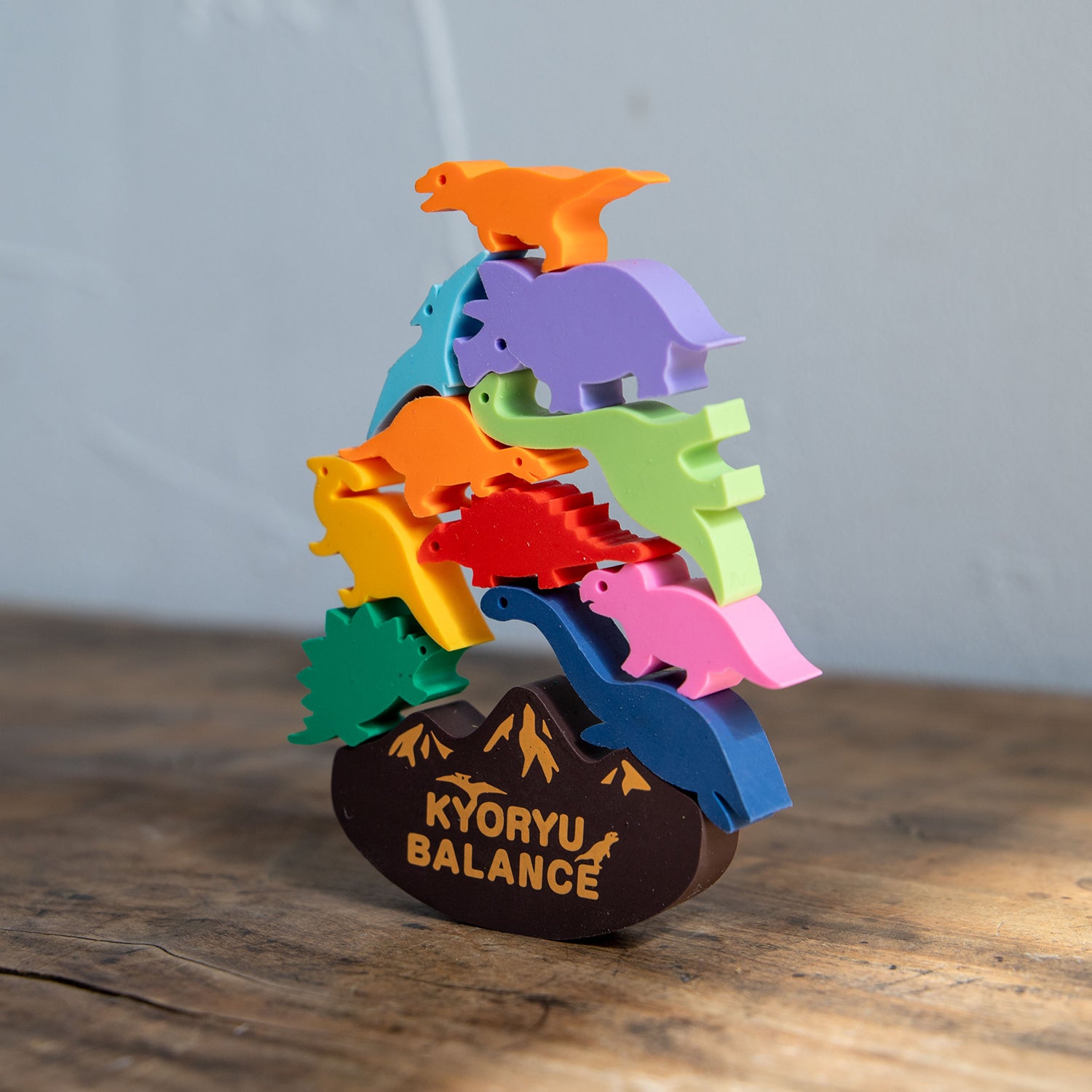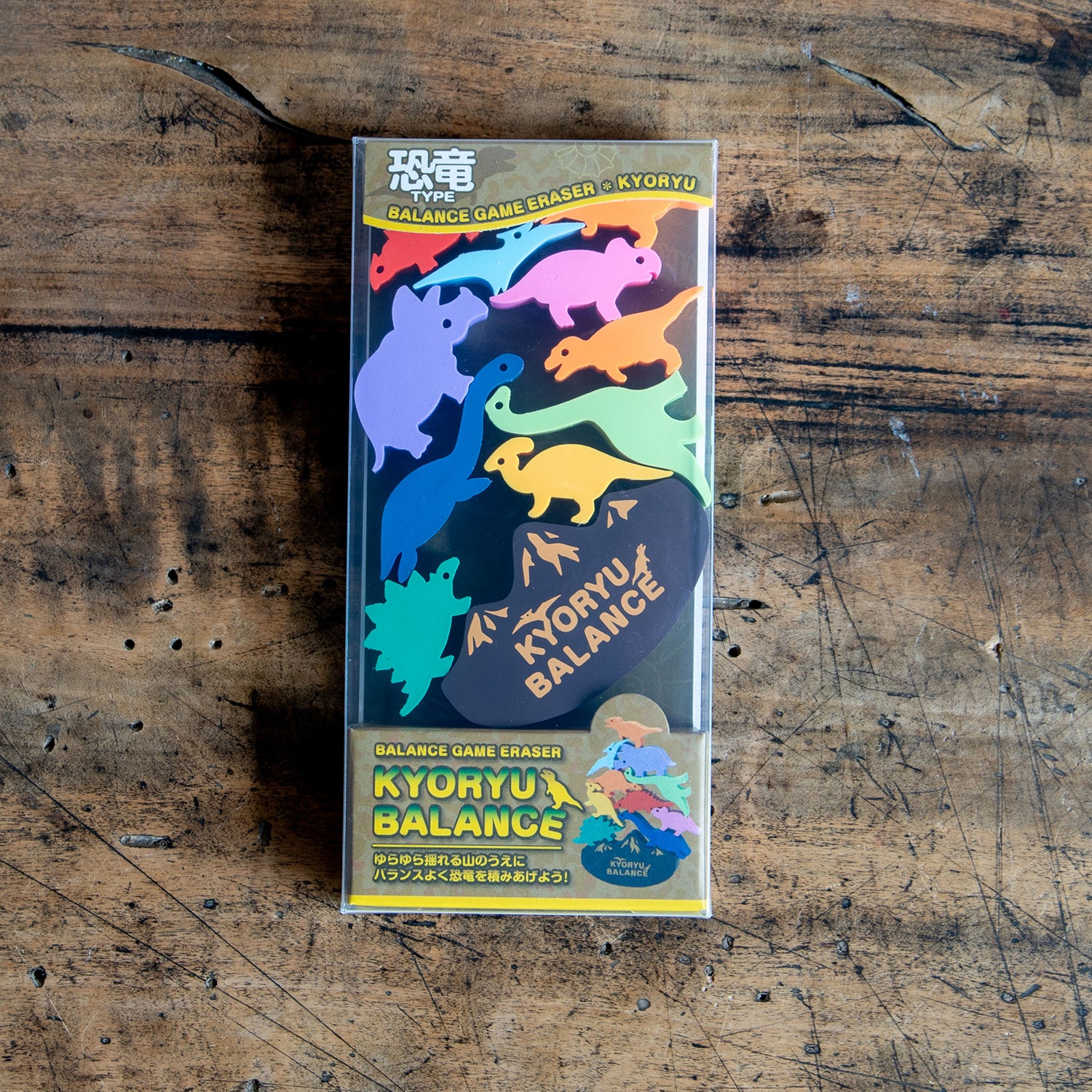 カラフルキュートな12種類の動物型消しゴムをゆらゆら揺れる台の上に積み上げていきます。