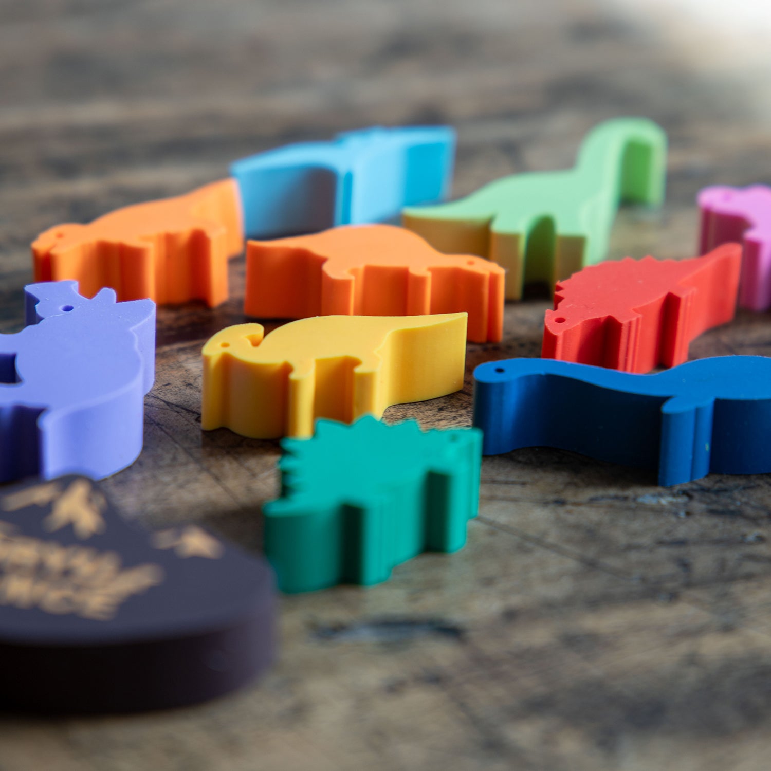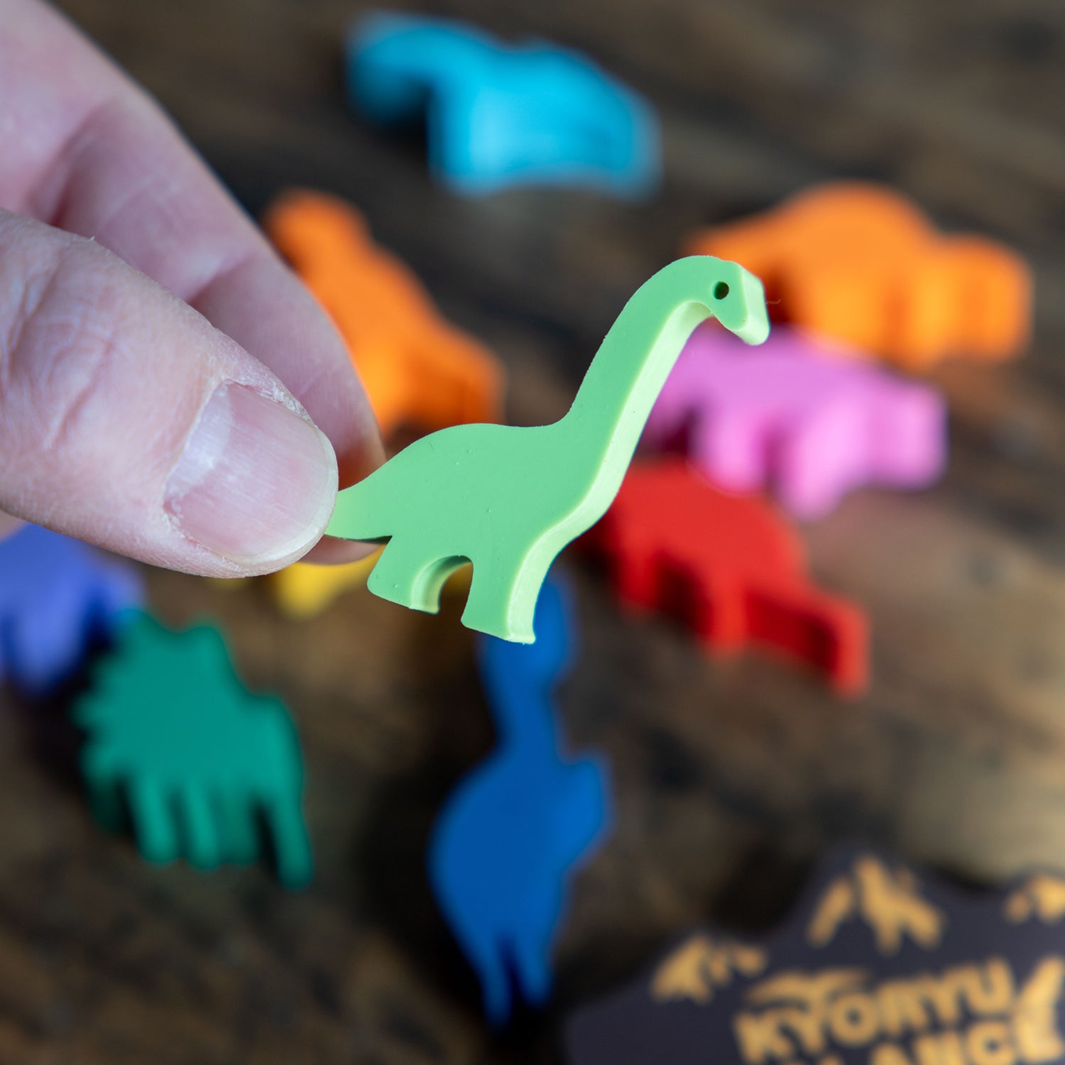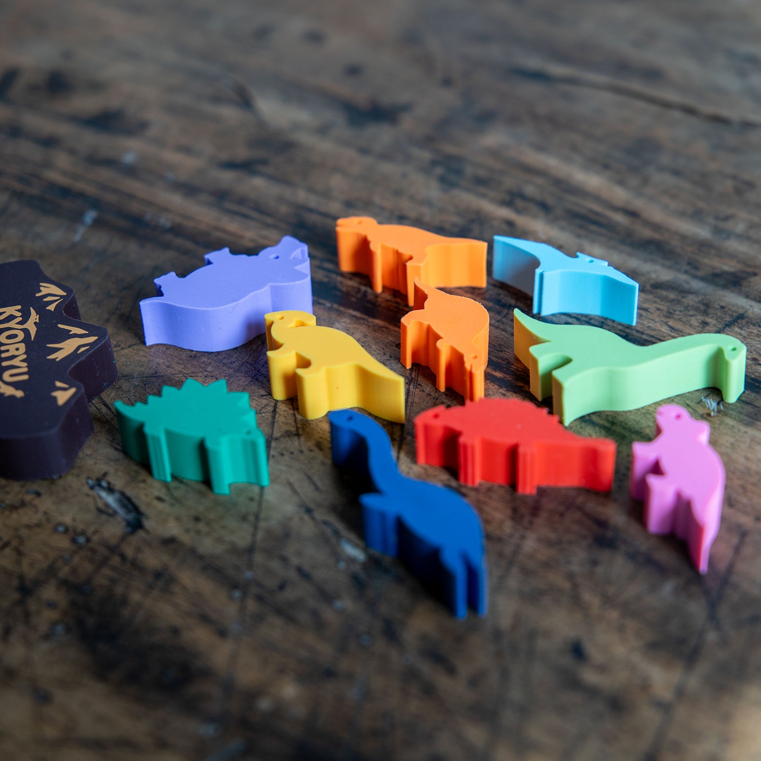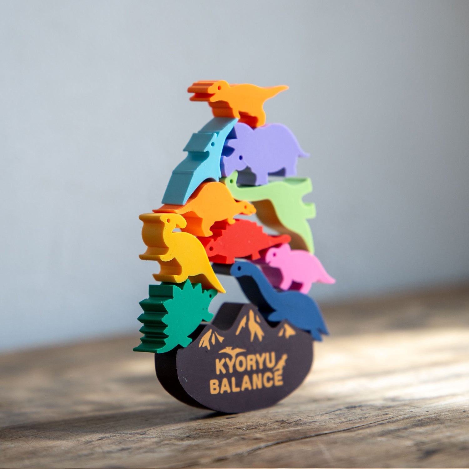 カラフルキュートな12種類の動物型消しゴムをゆらゆら揺れる台の上に積み上げていきます。