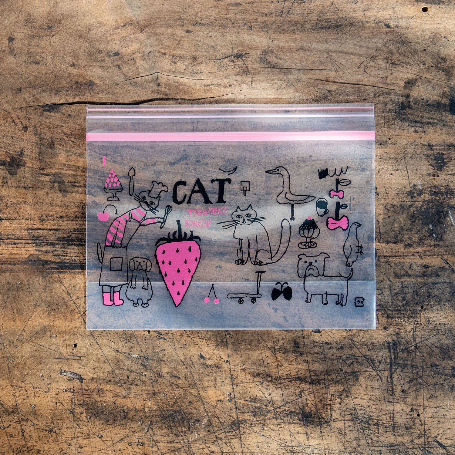 トラネコボンボン フリーザーバッグ S (いちご猫)