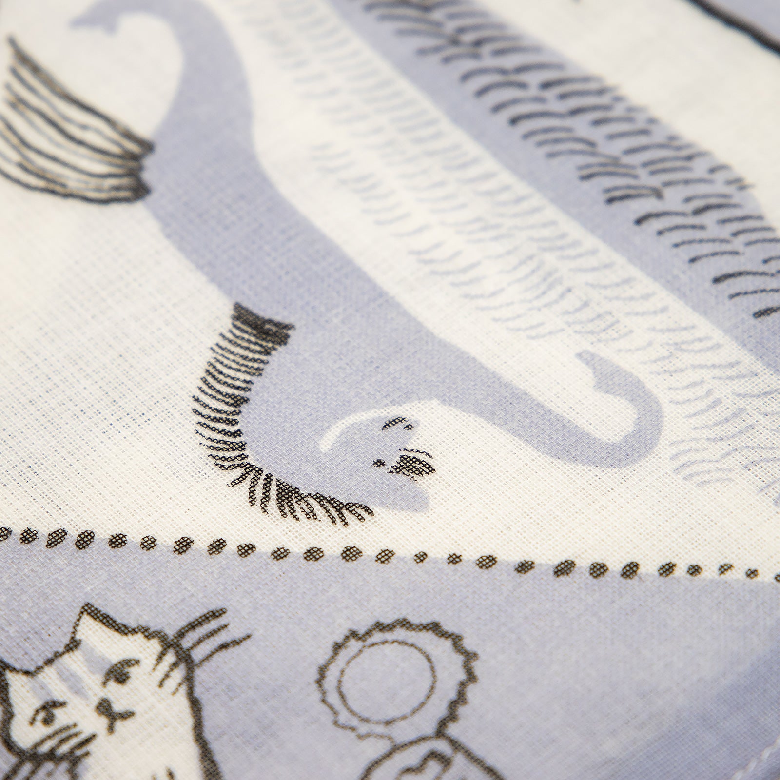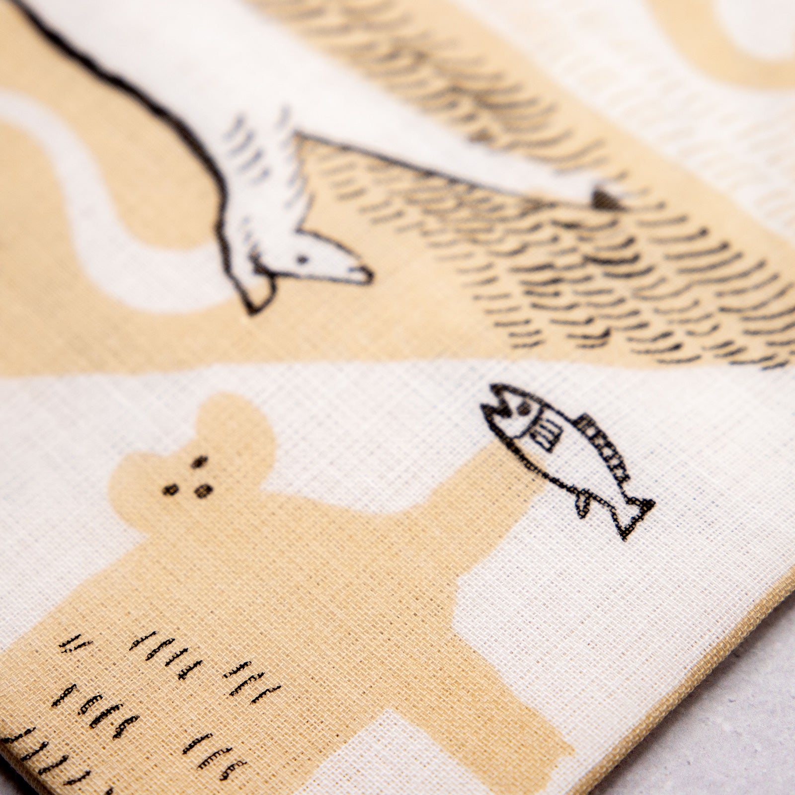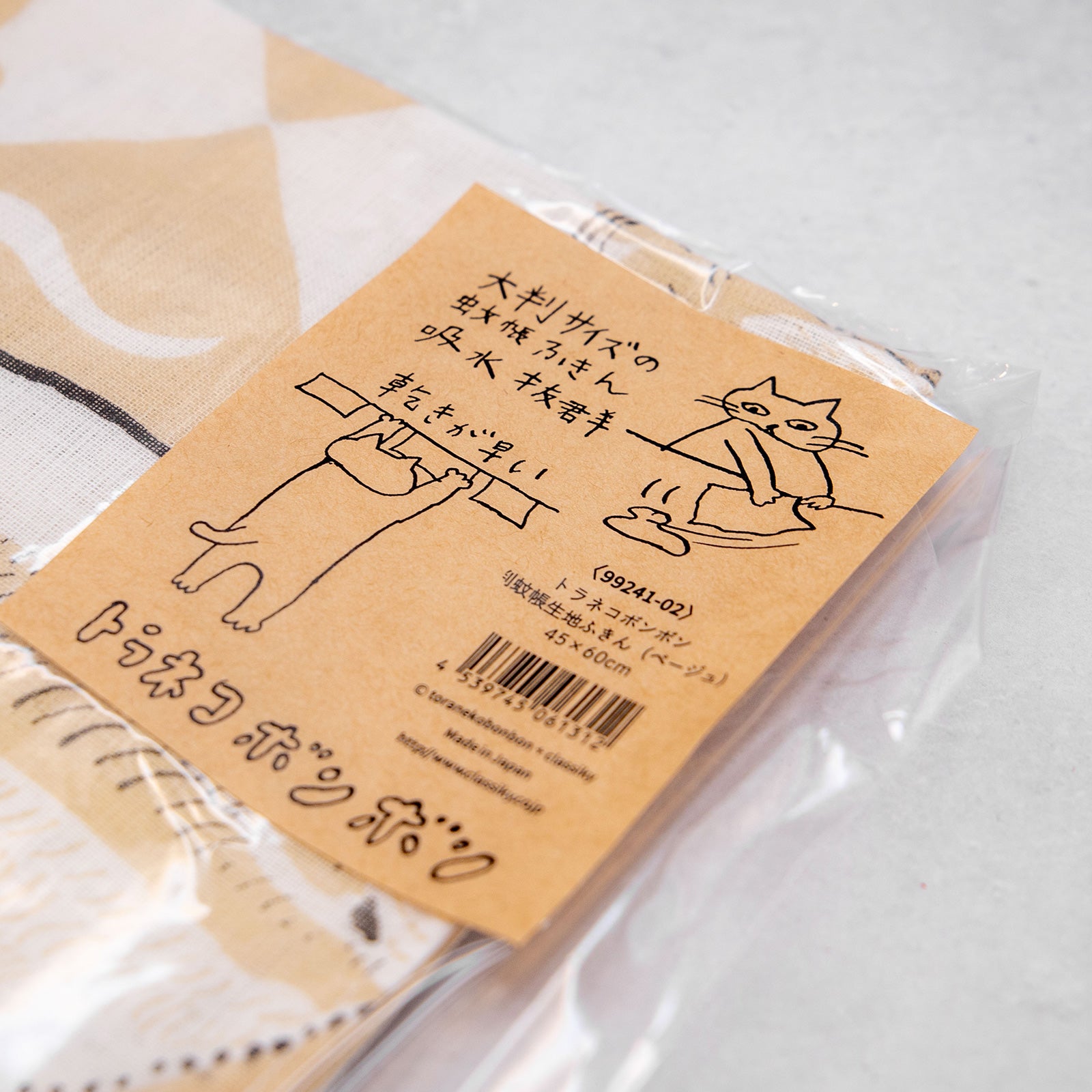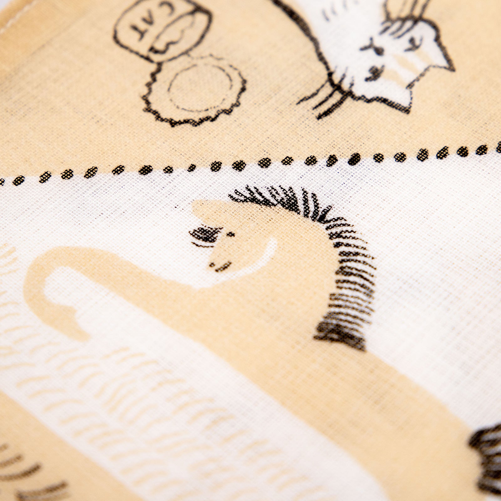 旅するレストラン・トラネコボンボンを主宰する料理人、中西なちおさんデザインの大判蚊帳生地ふきんです。