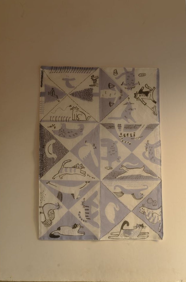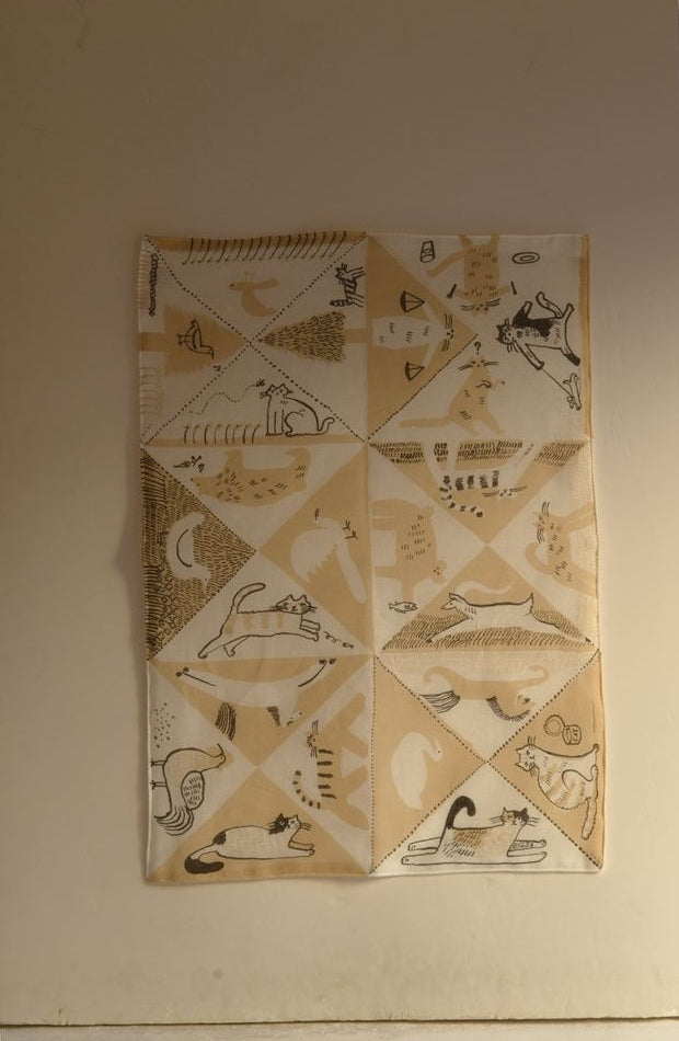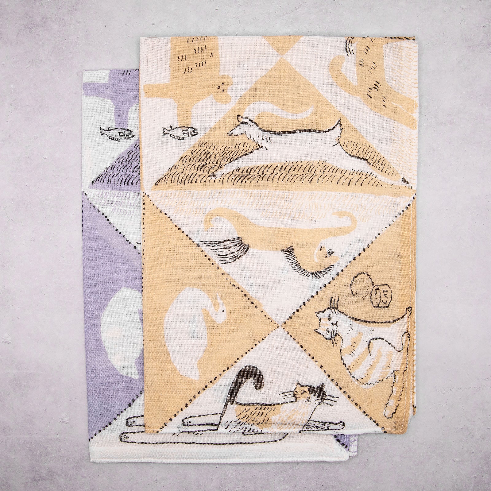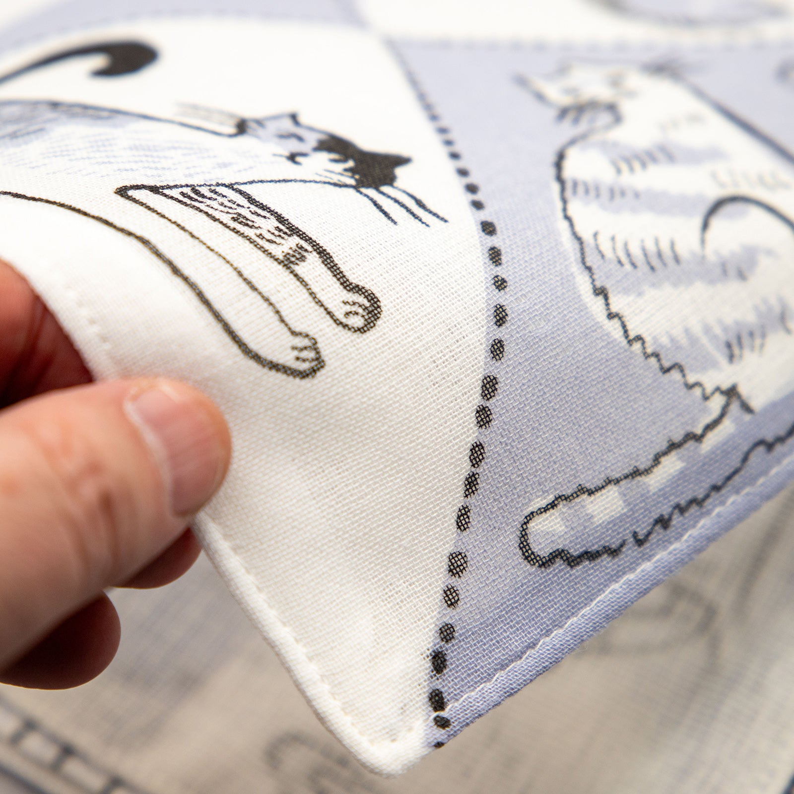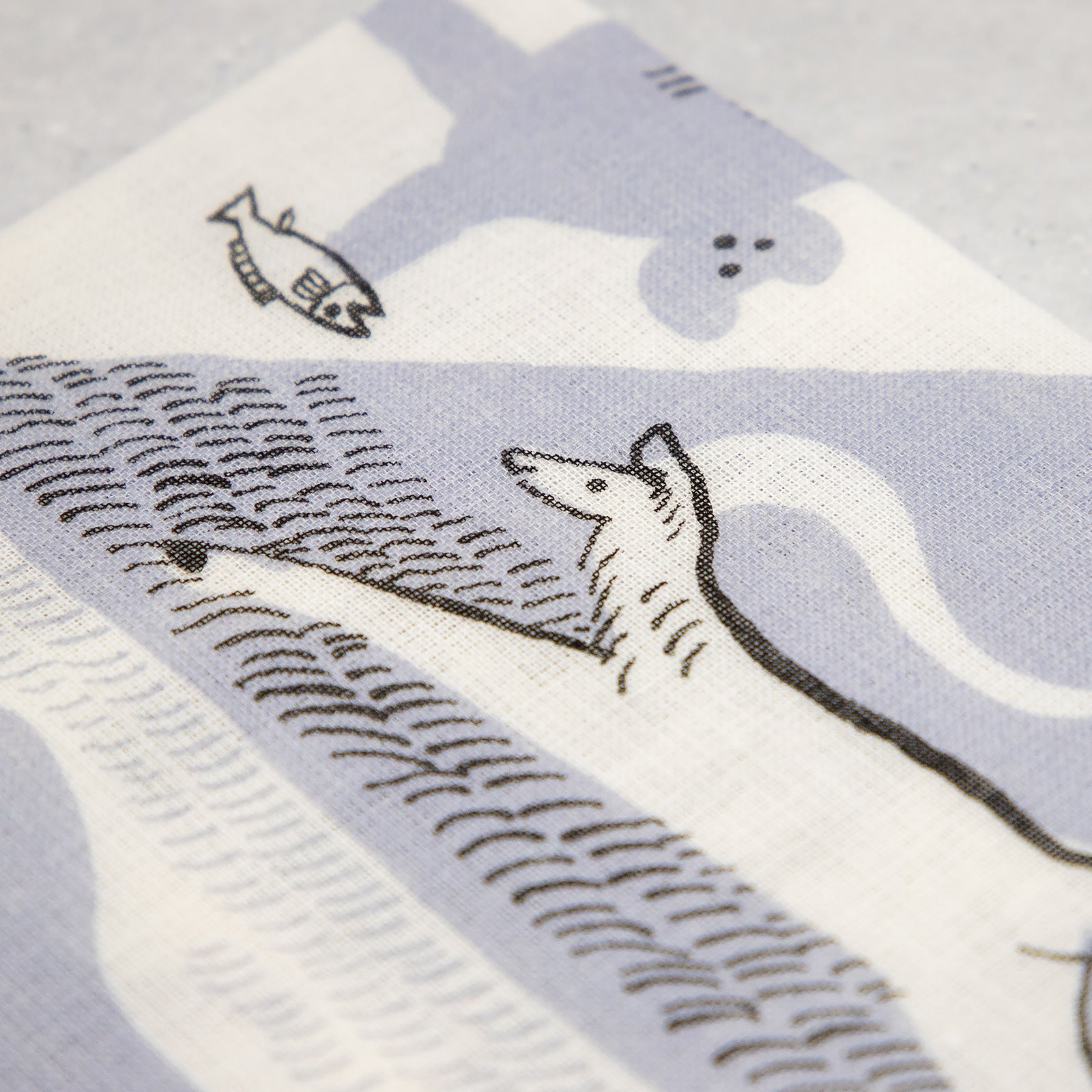 旅するレストラン・トラネコボンボンを主宰する料理人、中西なちおさんデザインの大判蚊帳生地ふきんです。