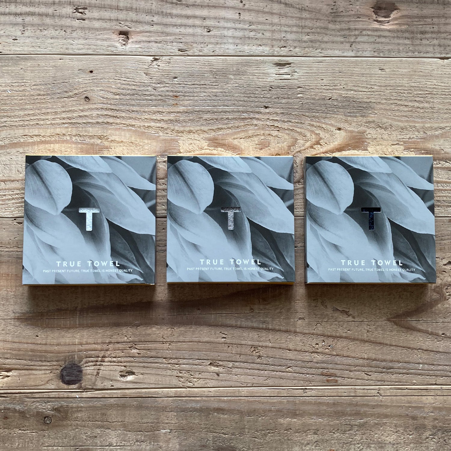 TRUE TOWELの基本カラー、ホワイト・グレー・ネイビーの無地で、やさしいタオルハンカチをご用意しました。